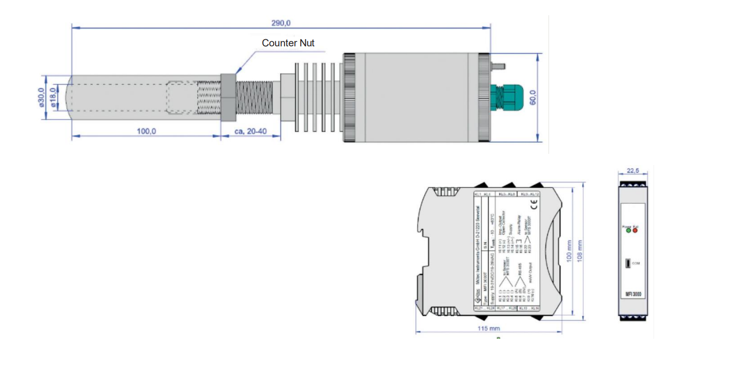Hệ thống bao gồm bộ phận cảm biến (Sensor) và bộ chuyển đổi tín hiệu (Transistor/Transmitter) với các thông số đáp ứng chuẩn công nghiệp: