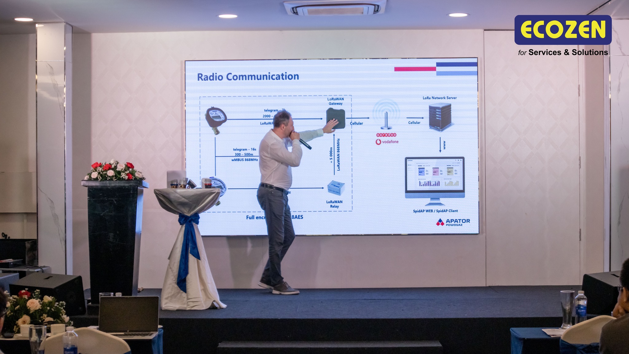 Sự kiện do Công ty Cổ Phần Quốc tế Thiền Sinh Thái (Ecozen) phối hợp cùng đối tác Apator Pogowaz (Ba Lan) tổ chức, nhằm giới thiệu các giải pháp công nghệ châu Âu trong giám sát lưu lượng nước từ xa. Chương trình tập trung làm rõ cấu trúc hệ thống, công nghệ áp dụng và cách triển khai hiệu quả trong điều kiện hạ tầng tại Việt Nam, giúp doanh nghiệp tối ưu vận hành và kiểm soát dữ liệu chính xác.