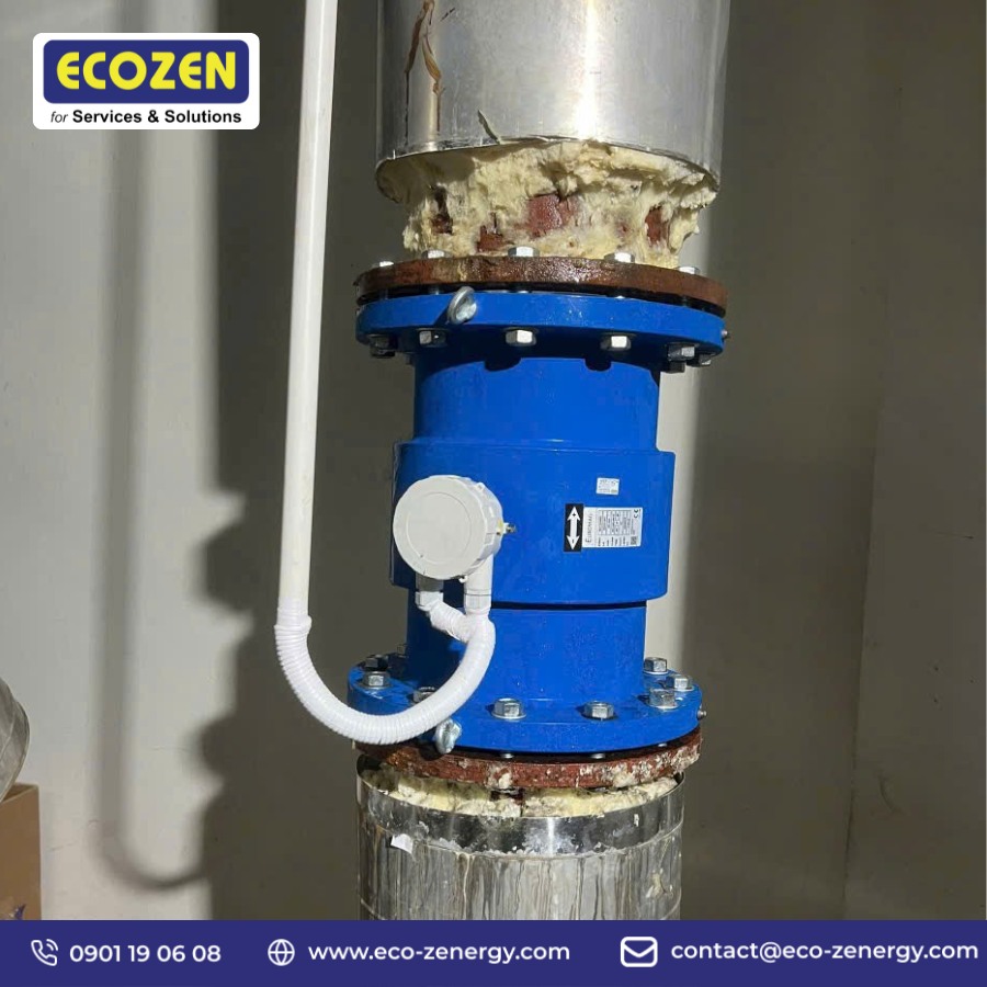 - Sau khi khảo sát thực tế hệ thống, Ecozen tư vấn sử dụng đồng hồ đo lưu lượng điện từ Euromag DN250 dạng remote.