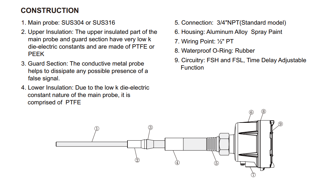 - Hoạt động ổn định với các loại chất lỏng, bùn sệt, bột nhão, hoặc hạt nhựa nóng chảy mà không bị báo giả do vật liệu bám trên que đo.