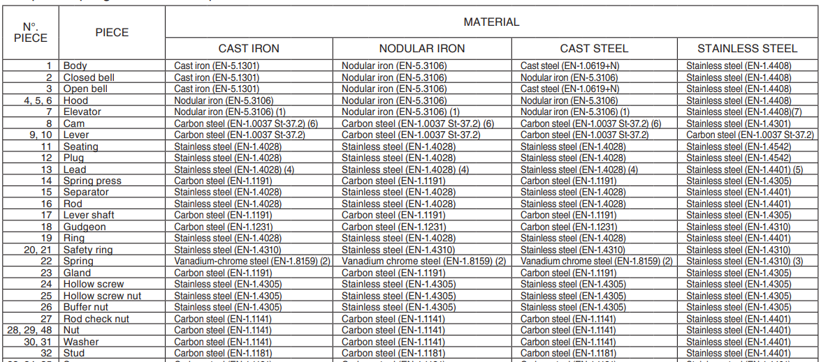 - Vật liệu: Gang/ Thép/ Thép không gỉ