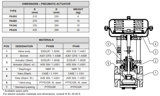 1. Thông số kỹ thuật Van điều khiển khí nén Adca Model PV40